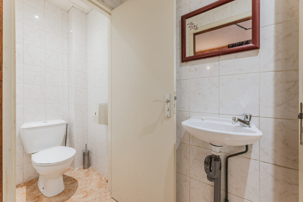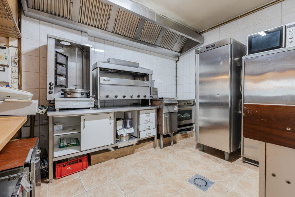Wanneer u het pand binnenstapt via de horecaruimte op de begane grond, valt meteen de veelzijdigheid van deze ruimte op. Achterin vindt u de keuken en zijn er twee toiletten voor gasten aanwezig.