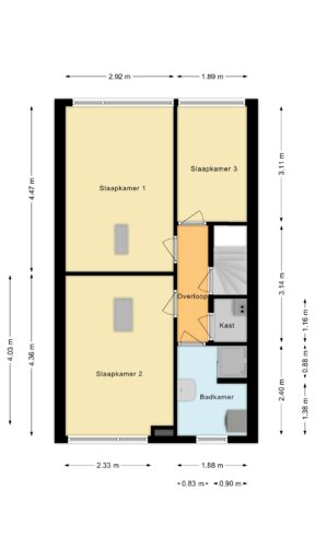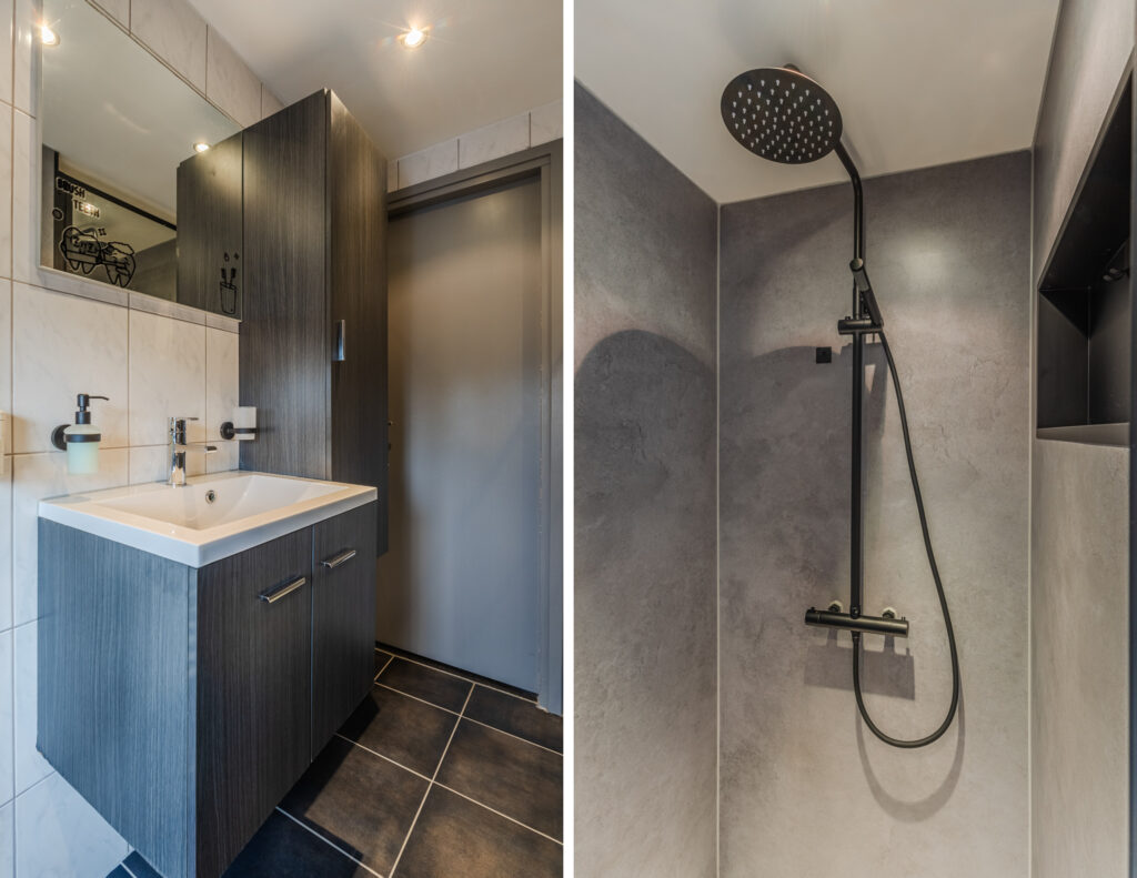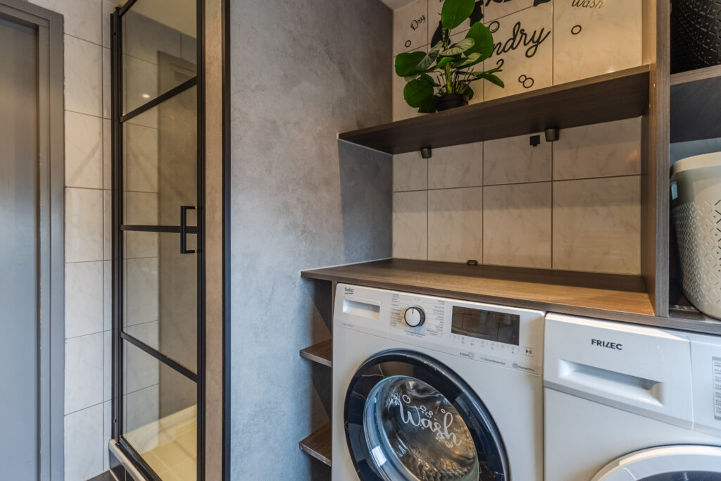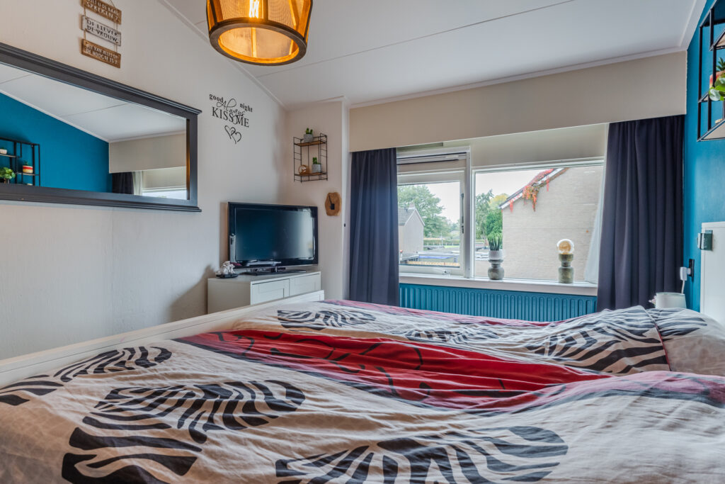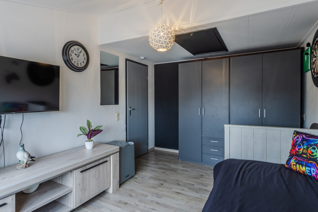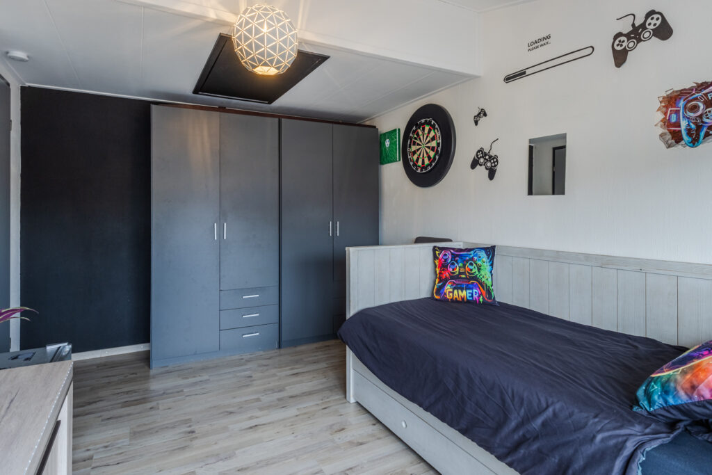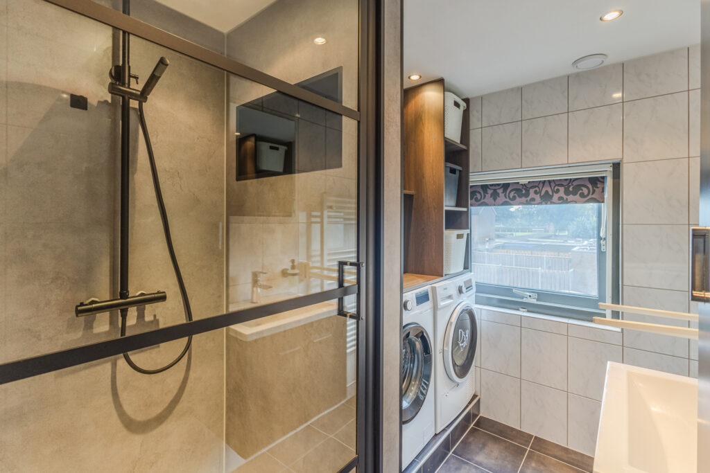 De overloop biedt toegang tot drie slaapkamers en de moderne badkamer. Twee slaapkamers beschikken over een vlizotrap naar een kleine vliering, ideaal voor extra bergruimte. De badkamer voorzien van een inloopdouche (2025), stijlvol wastafelmeubel en aansluiting voor witgoed. Op de overloop bevindt zich bovendien een cv-/bergkast.