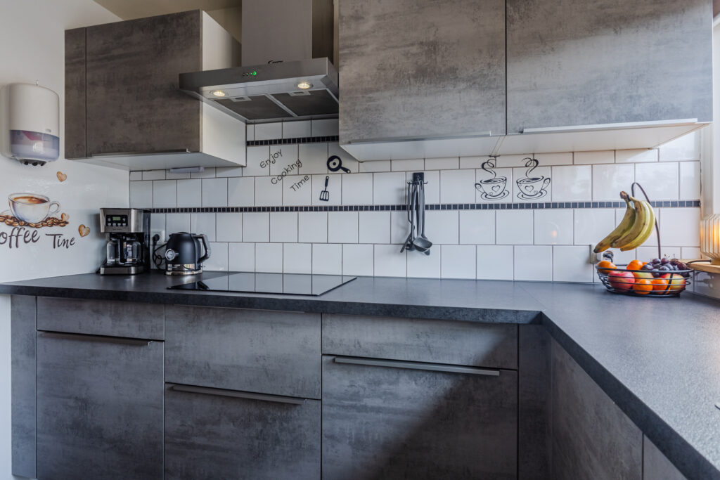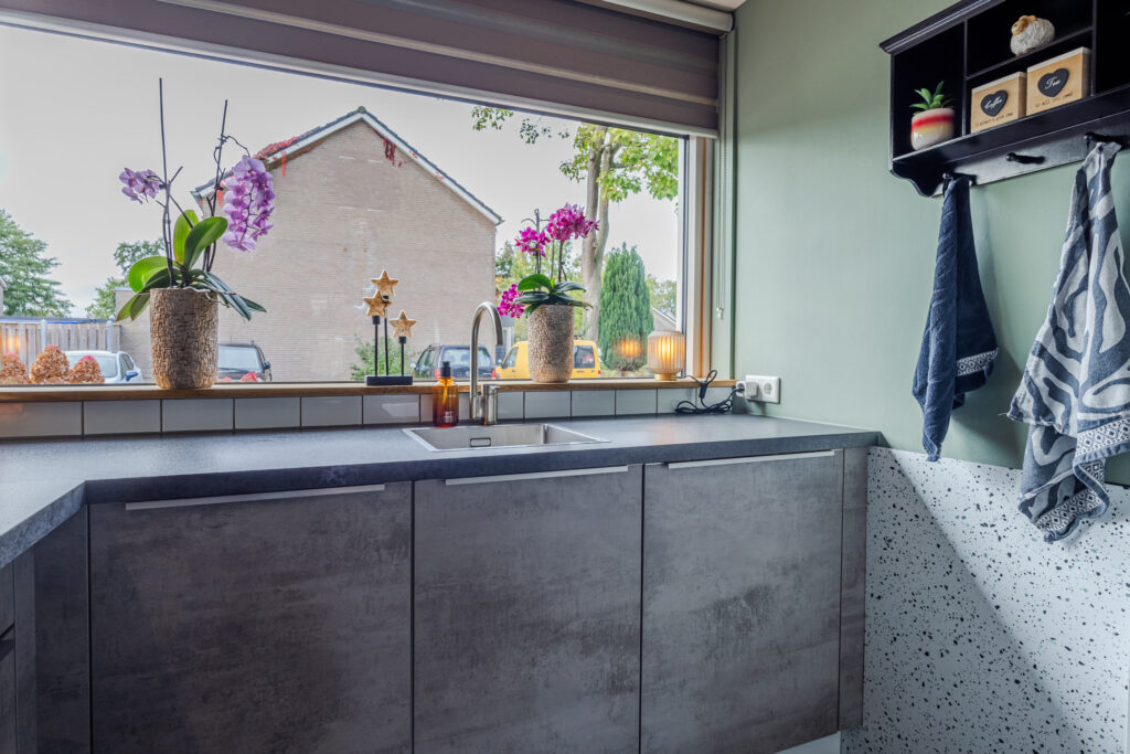 Aan de voorzijde bevindt zich de moderne keuken, voorzien van diverse inbouwapparatuur: inductiekookplaat, afzuigkap, oven, koelkast en vaatwasser. De inbouwapparatuur zijn tussen 2017 en 2024 vernieuwd. In de woonkamer bevindt zich tevens een extra bergkast. In het trapgat is een airco-installatie geplaatst, waardoor de woning in zowel zomer als winter comfortabel aanvoelt.
