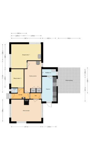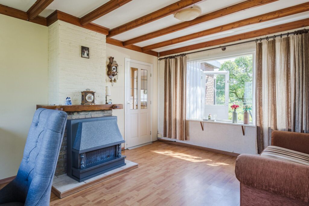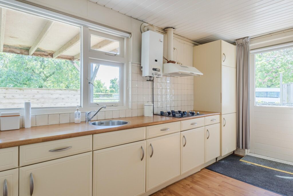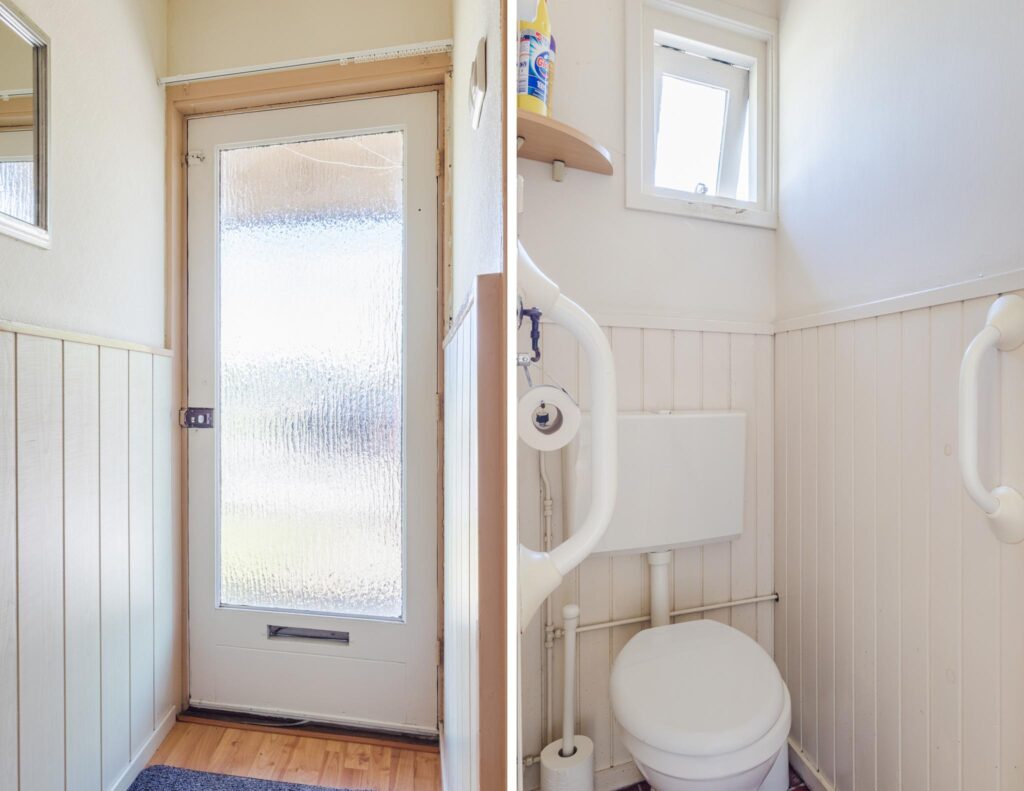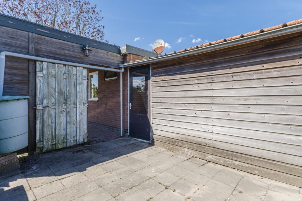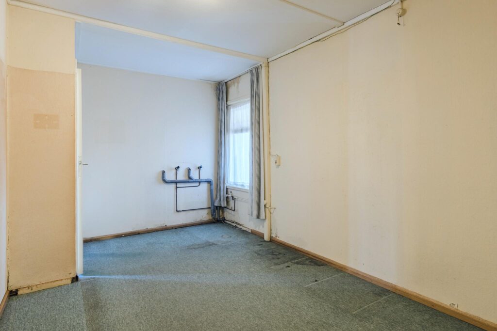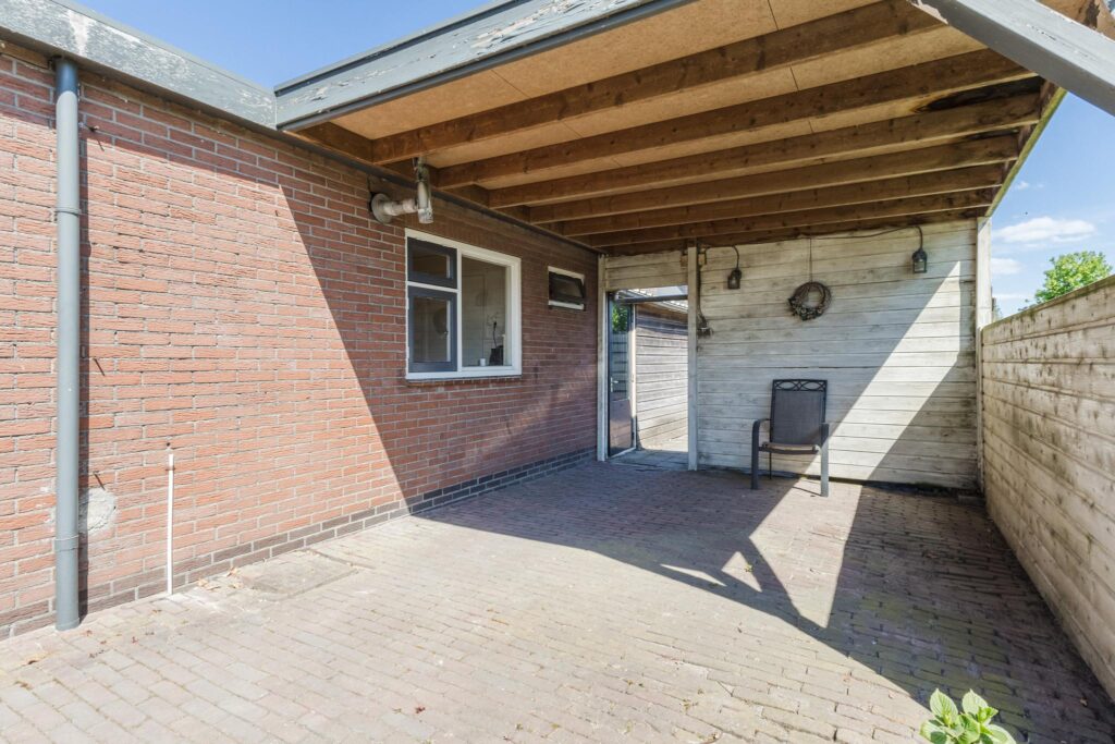 Je komt binnen via de entree/gang met toegang tot het separate toilet en de meterkast. Vanuit hier bereik je de hal die leidt naar de lichte doorzonwoonkamer, waar je geniet van veel daglicht en uitzicht op de tuin. Aansluitend vindt je de royale keuken, voorzien van een gasfornuis, afzuigkap en een praktische achterentree. De badkamer is bereikbaar via de keuken en is uitgerust met een wastafel en een douche.