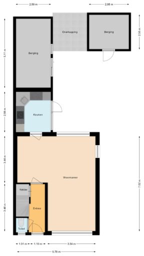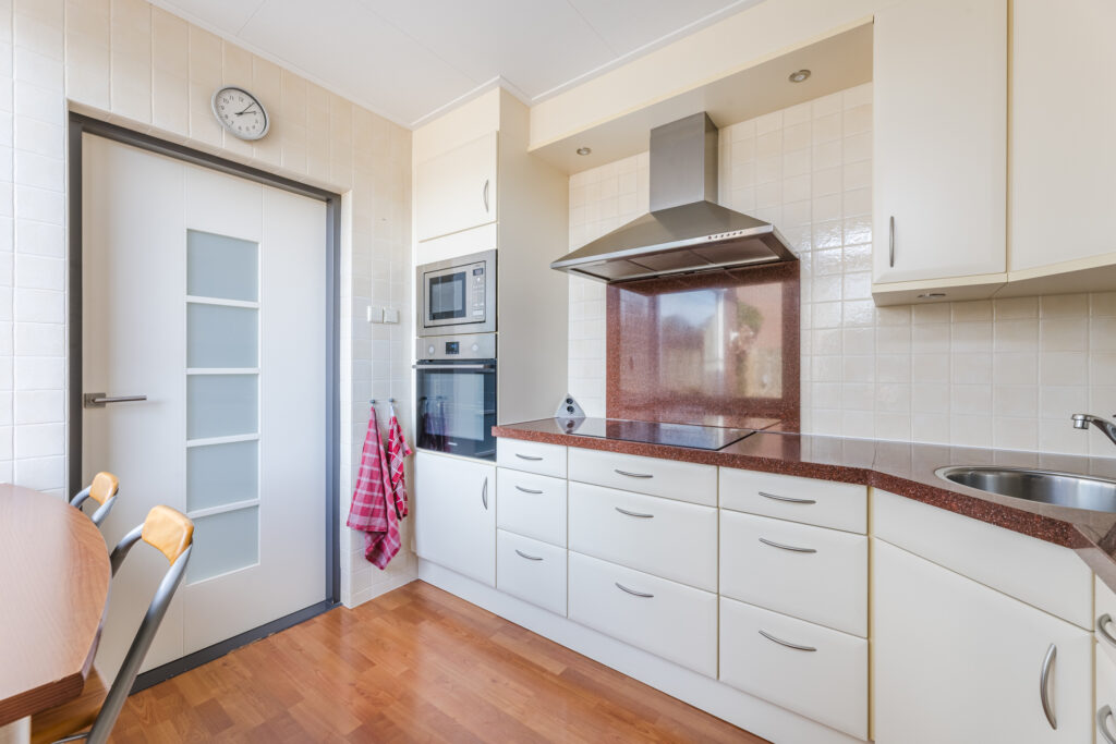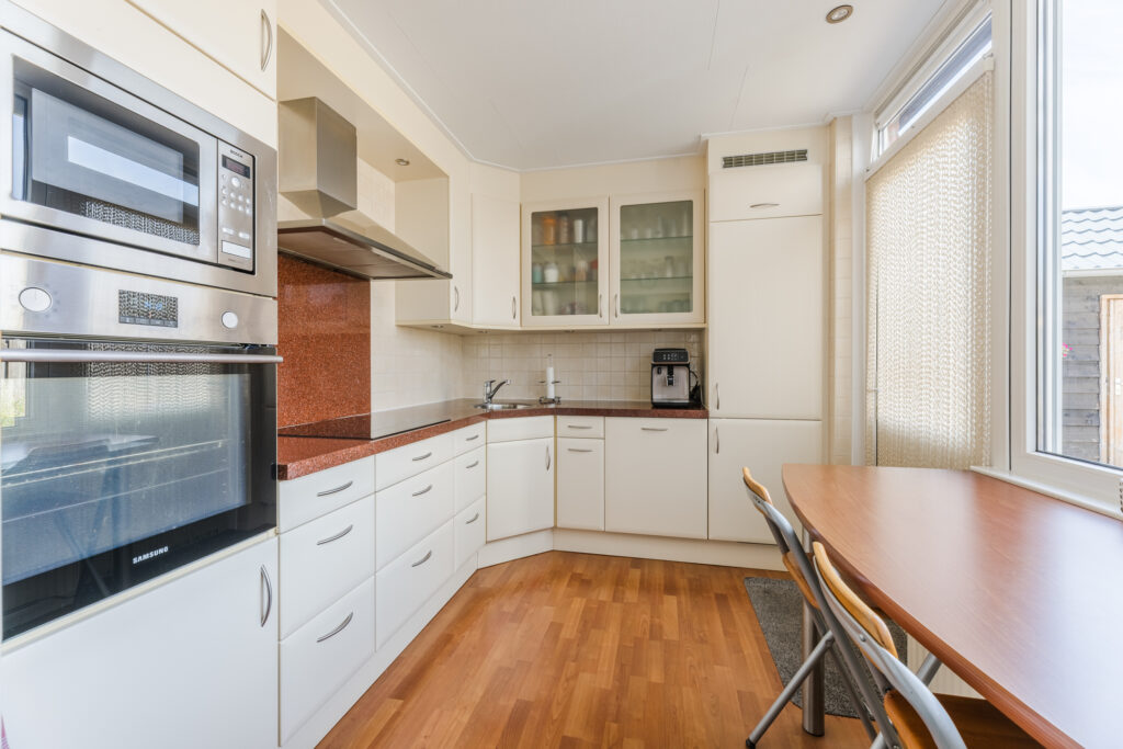 Via de entree/hal bereik je de toiletruimte, meterkast, trapopgang naar de eerste verdieping en een handige kelder – perfect voor extra bergruimte. De ruime woonkamer is heerlijk licht en voorzien van airconditioning, met een gezellige zithoek aan de voorzijde. Aansluitend bevindt zich de keuken, uitgerust met veel kastruimte en diverse inbouwapparatuur zoals een inductiekookplaat, afzuigkap, magnetron, oven, koelkast en vaatwasser. Vanuit de keuken is er toegang tot de achtertuin.