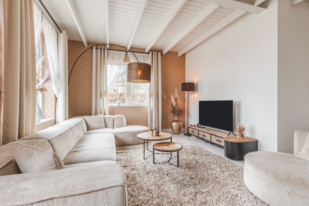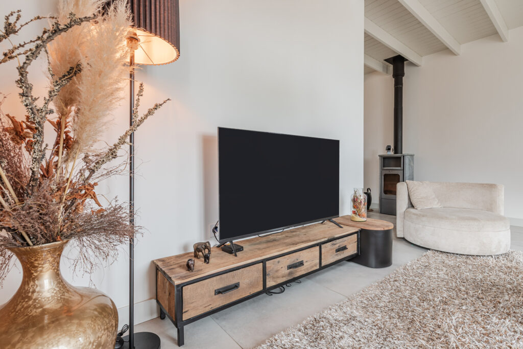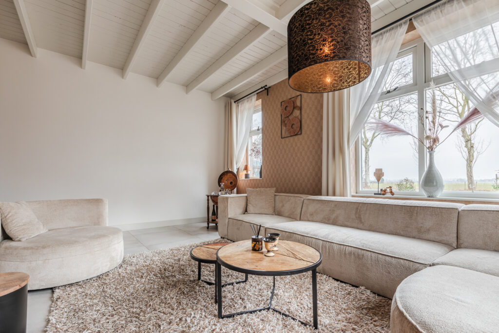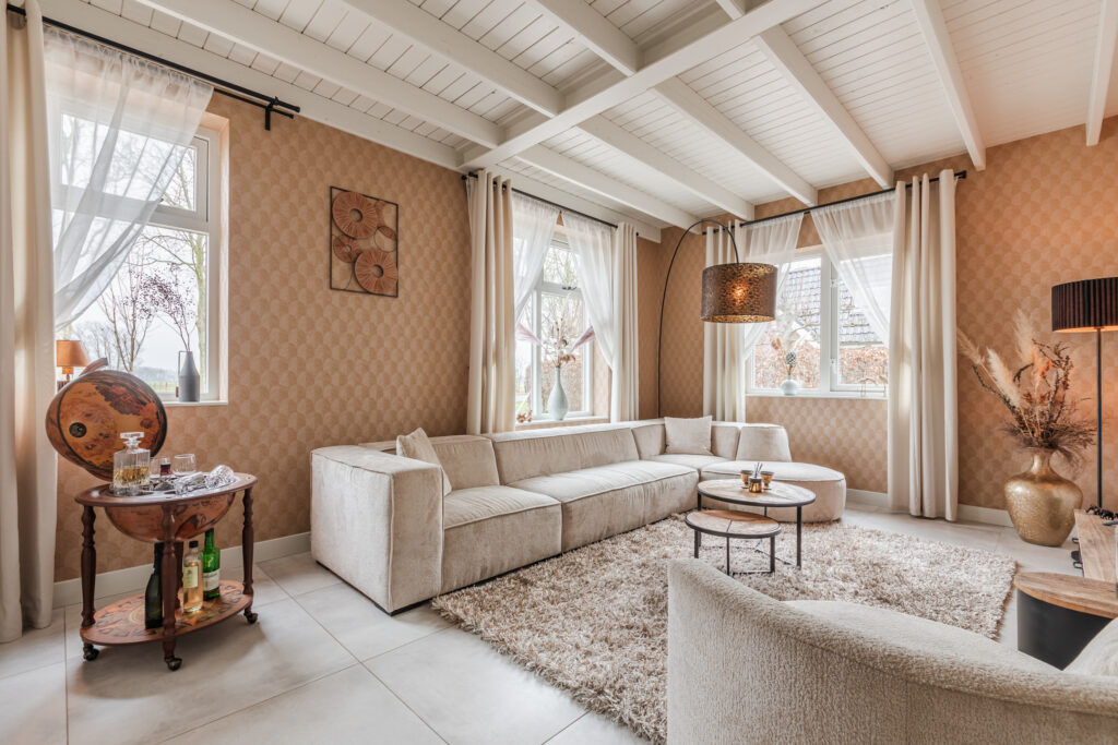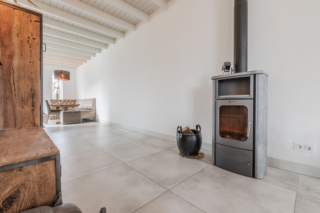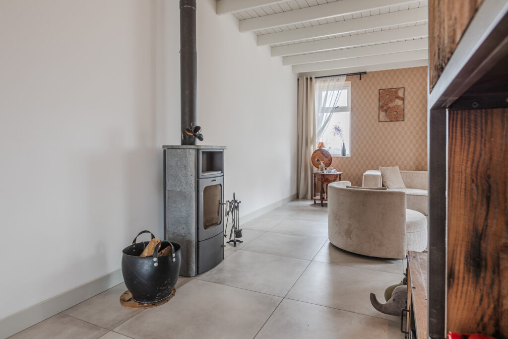 De L-vormige woonkamer van maar liefst circa 13 meter lang straalt sfeer en karakter uit, mede dankzij de houten balken in het plafond en de houtkachel (ter overname). De open verbinding met de woonkeuken zorgt voor een lichte, ruimtelijke uitstraling, perfect voor gezellige avonden en samenzijn met familie en vrienden.