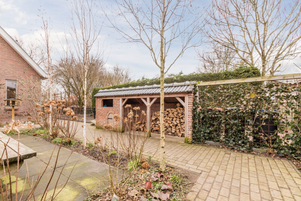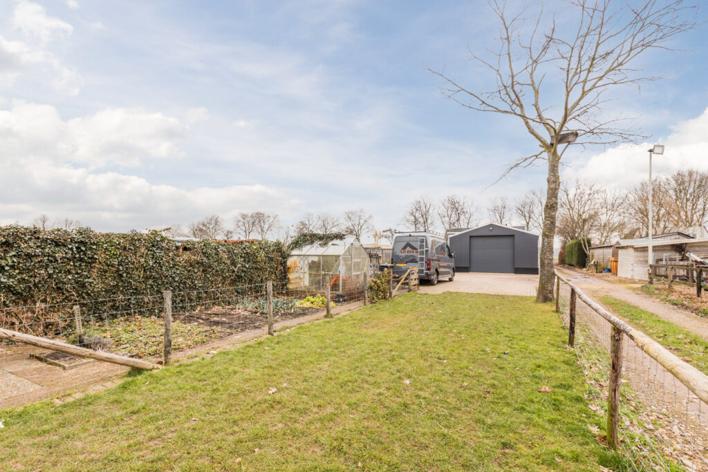 Daarnaast beschikt de woning over een royale vrijstaande garage/hobbyschuur van 68 m². Deze garage is voorzien van een pantry en toilet, waardoor hij niet alleen geschikt is voor het stallen van voertuigen, maar ook uitstekend dienst kan doen als hobbyruimte, werkplaats, opslag of praktijkruimte aan huis. De combinatie van een diepe tuin en een multifunctionele garage maakt dit perceel bijzonder veelzijdig en biedt talloze mogelijkheden om wonen, werken en buitenleven optimaal te combineren.