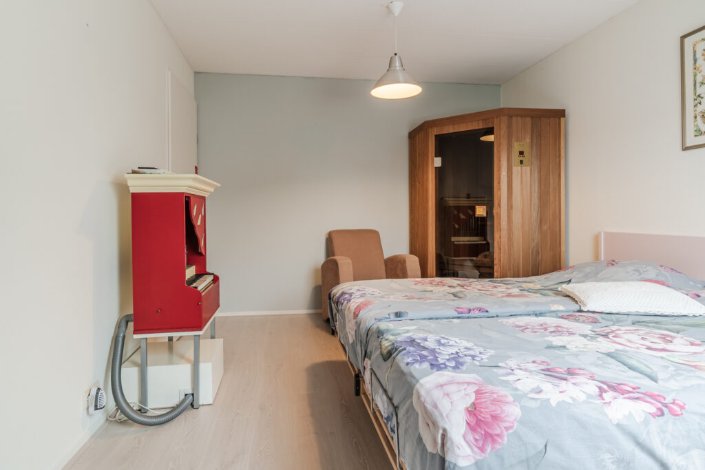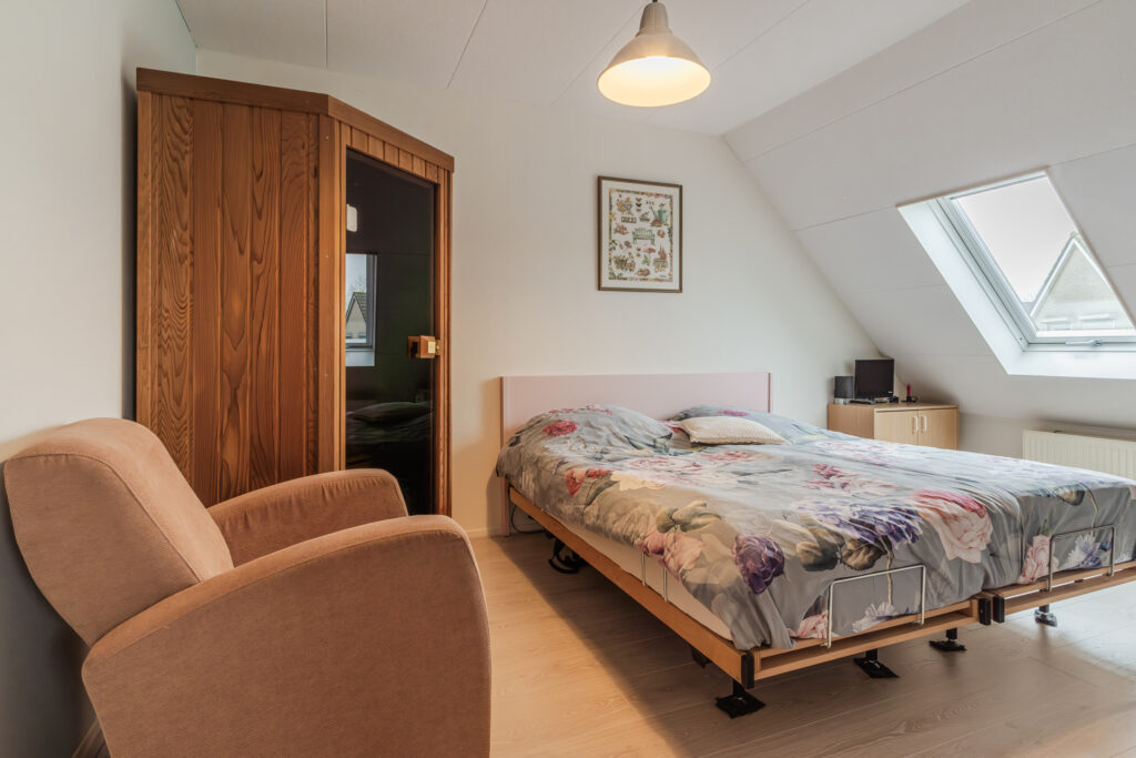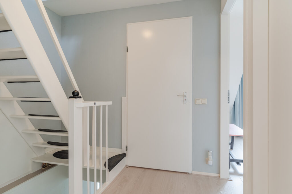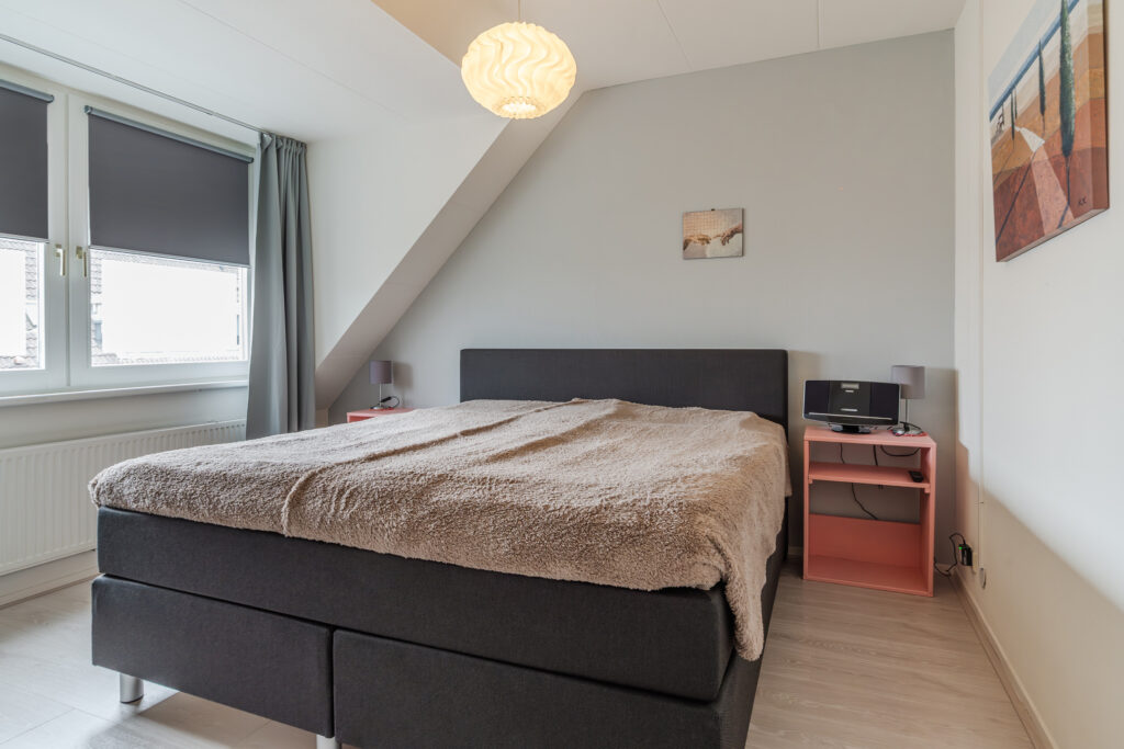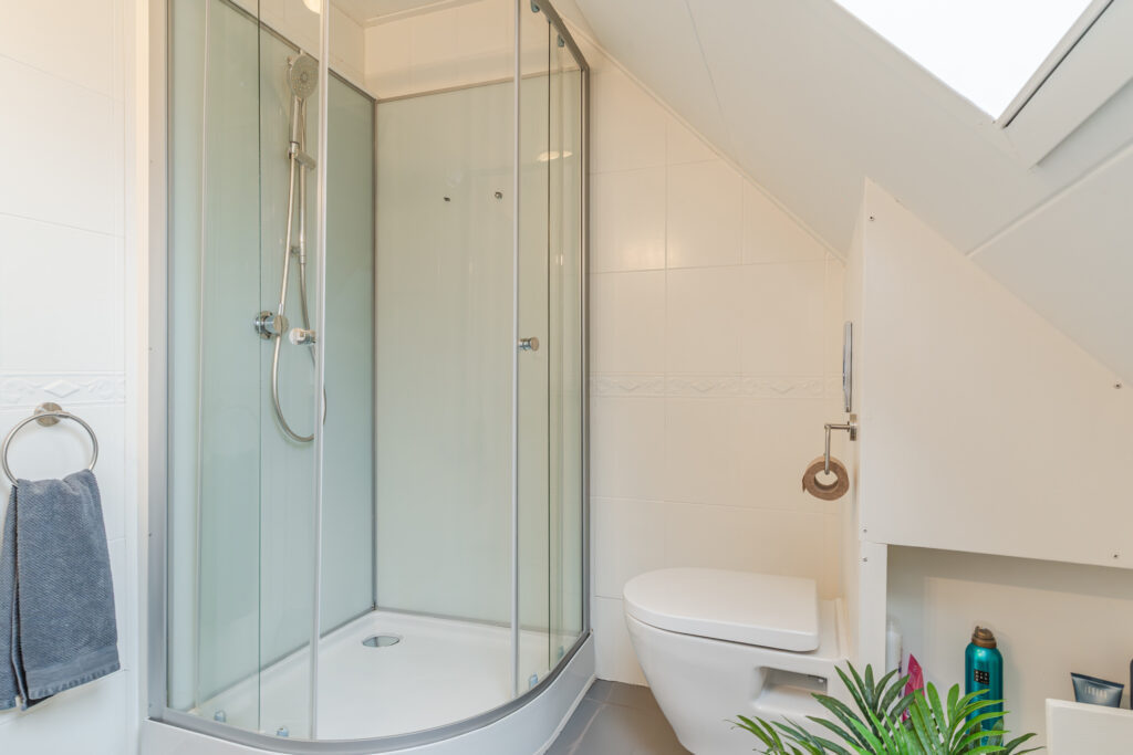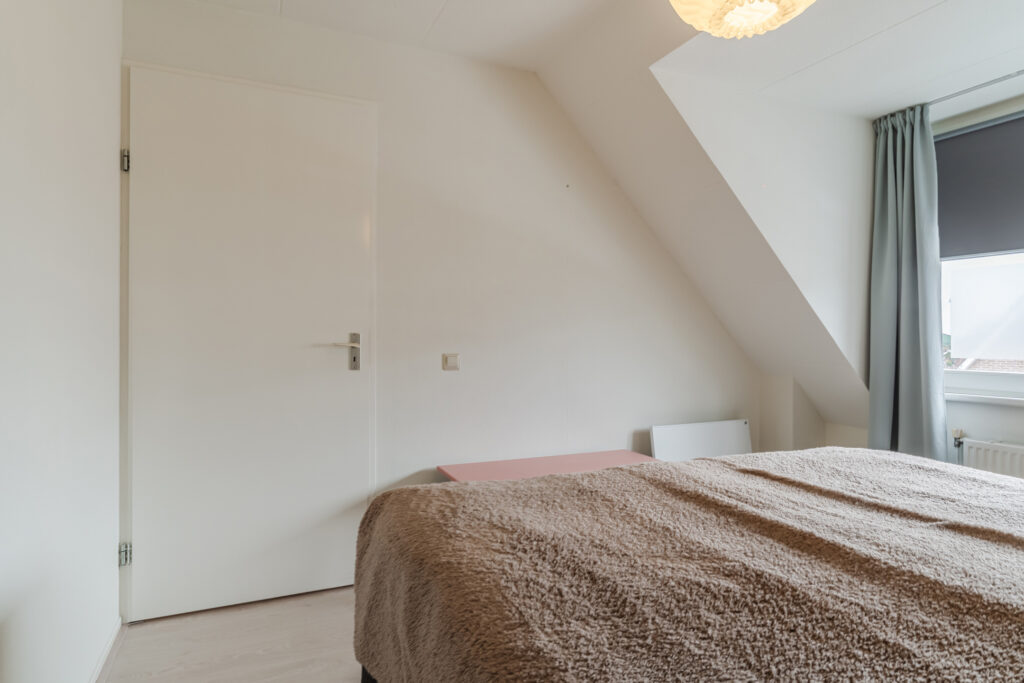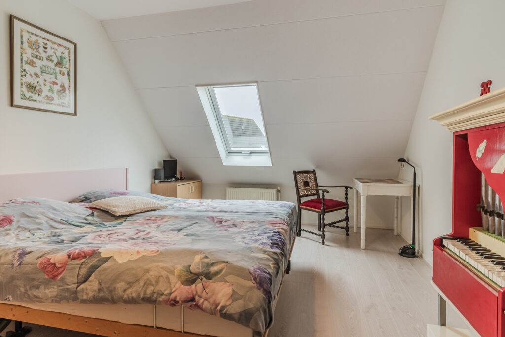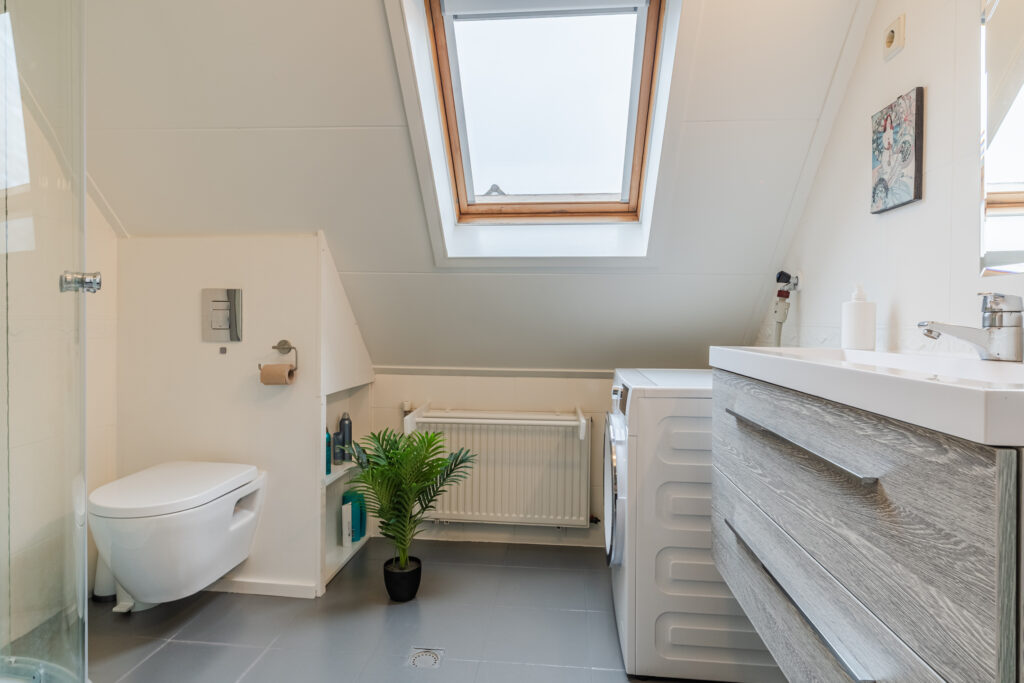 De overloop met vaste trap naar de 2e verdieping geeft toegang tot drie slaapkamers, waarvan de slaapkamer aan de voorzijde is voorzien van een dakkapel. De moderne badkamer beschikt over een 2e toilet, douche, wastafelmeubel en witgoedaansluiting.