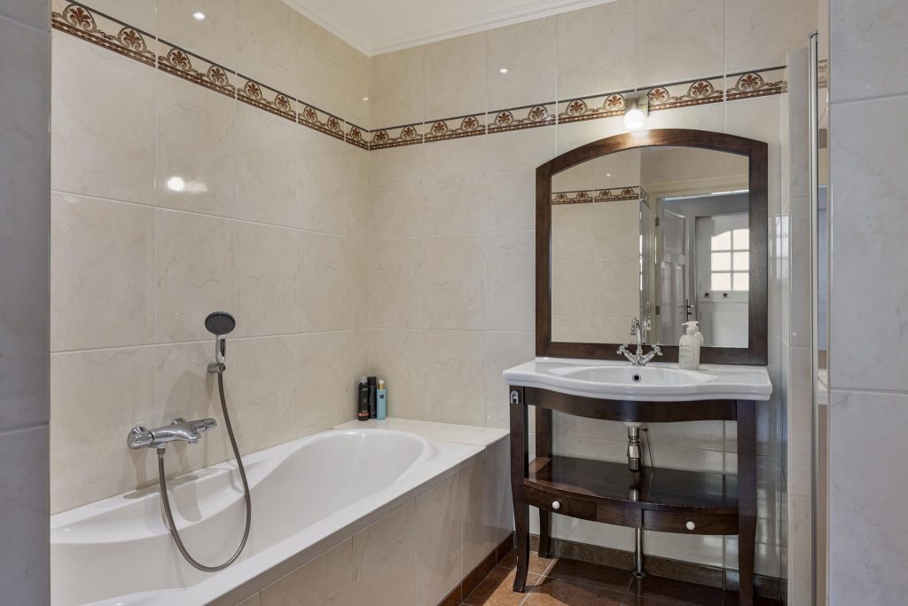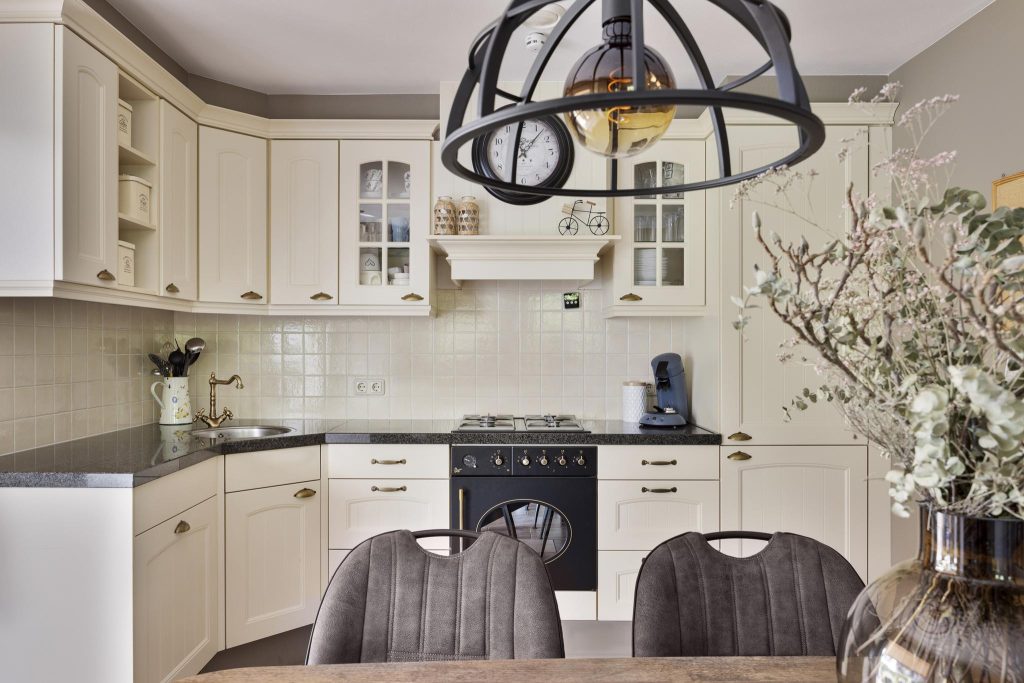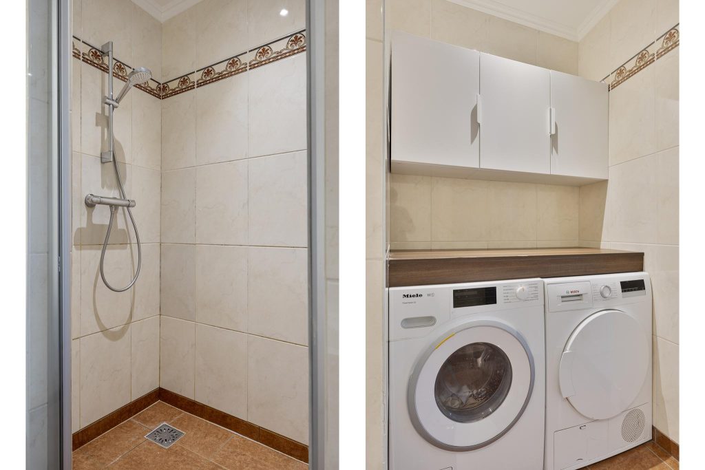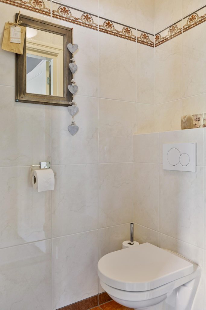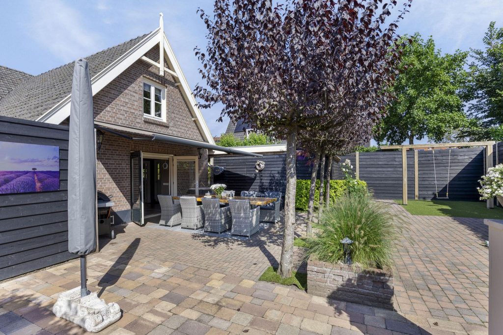 Via de zijentree komt u in de hal met de meterkast en het toilet. Vanuit de hal heeft u toegang tot de woonkeuken, badkamer en woonkamer. In de woonkeuken vindt u een moderne hoekkeuken, volledig uitgerust met alle benodigde inbouwapparatuur zoals een vaatwasser (2021), koelkast, oven, gaskookplaat, afzuigkap (2019) en er is een 2e zijentree. Via de openslaande deuren loopt u gemakkelijk de achtertuin in. De badkamer is voorzien van een ligbad, inloopdouche, wastafel en aansluiting voor witgoed. De royale woonkamer heeft mooie raampartijen, wat zorgt voor een fijne lichtinval. In de woonkamer bevindt zich ook de trapopgang met trapkast. Verder is de gehele begane grond voorzien van vloerverwarming.