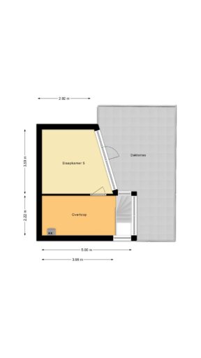 Op de tweede verdieping bevindt zich een overloop met de opstelling van de cv-ketel. Hier vind je tevens de vijfde slaapkamer, een heerlijke extra ruimte met toegang tot het dakterras van circa 24 m2. Een fijne plek om in alle rust buiten te zitten.