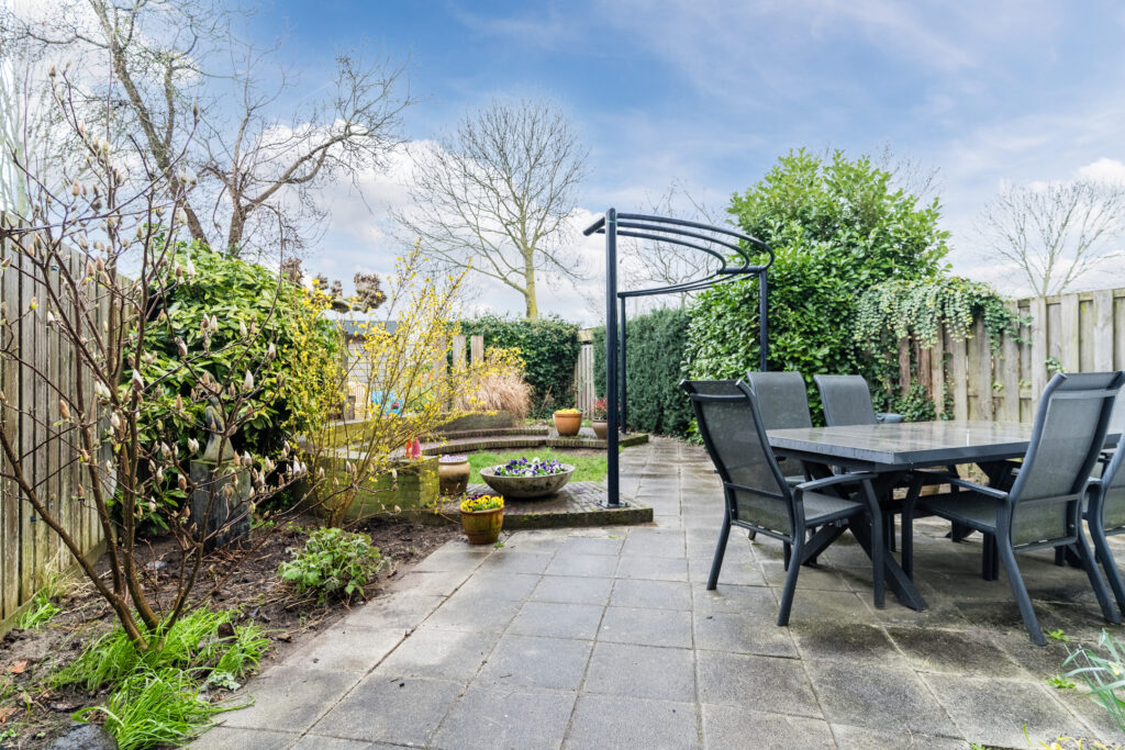 De achtertuin is gelegen op het zuidoosten en is verzorgd aangelegd met vaste beplanting. In de tuin staat een 2e berging.